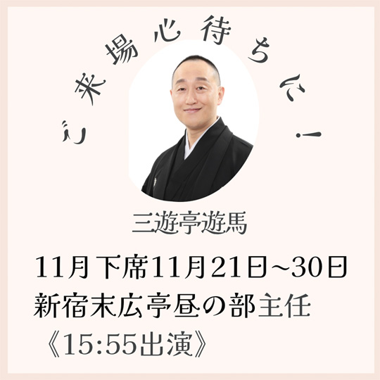 ☆21日〜30日:新宿末広亭昼の部主任15:55出演