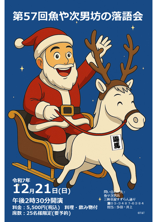 ☆25日:次男坊落語会14:30開演《要予約03-3487-6384》