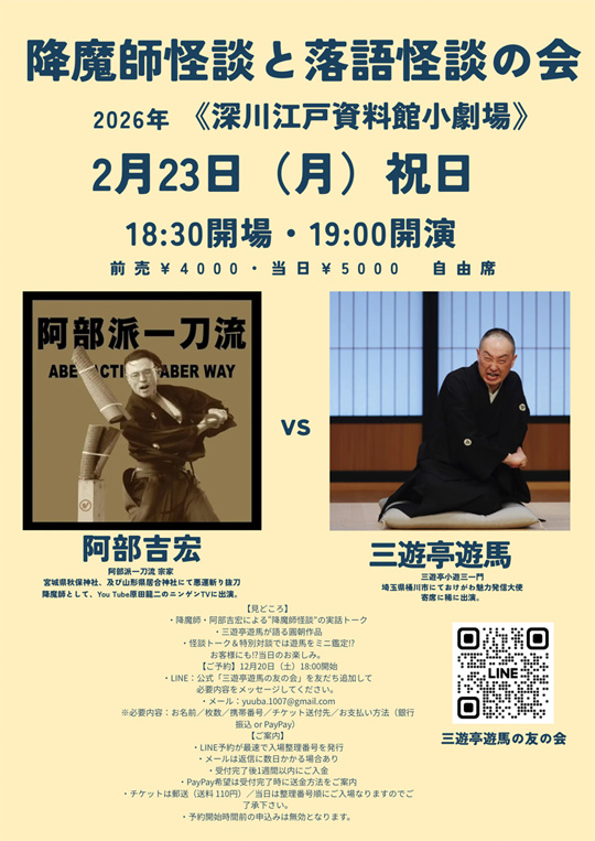 ☆23日:深川【降魔師怪談vs落語怪談】19:00開演